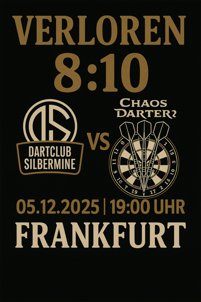 Dartclub Silbermine e. V. vs. Chaos Darter 2 Frankfurt (Oder) Endstand: 8:10 – knappe Niederlage Am Freitagabend reiste der Dartclub Silbermine e. V. nach Frankfurt (Oder) zum Auswärtsspiel gegen Chaos Darter 2 – und es…
