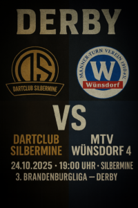 Der Dartclub Silbermine empfängt den MTV Wünsdorf 4. Anwurf ist 19:00 Uhr in der Silbermine.